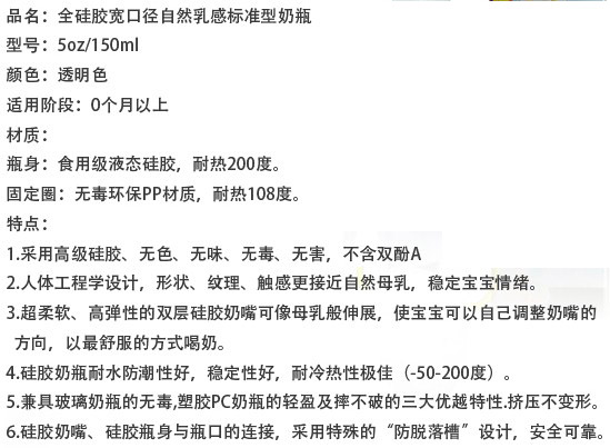 硅膠很柔軟,不用奶瓶刷用手也可以刷到奶瓶的各個角落,容易清洗。寶寶吸奶時,奶瓶會隨著奶水的減少而自動收縮,始終保持著瓶身內(nèi)外氣壓一致,避免寶寶吸入過多的空氣而導(dǎo)致嗆奶、腹脹等不適,有效解決喂奶時脹氣的煩惱,從而達到自動呼吸的功能。