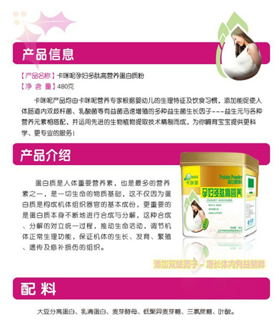 蛋白質(zhì)是人體重要營養(yǎng)素,也是多的營養(yǎng)素之一,是一切生命的物質(zhì)基礎(chǔ),可以保證機(jī)體的生長、發(fā)育、繁殖、遺傳及修補(bǔ)損傷的組織。上海卡咪呢母嬰用品有限公司是專業(yè)的母嬰營養(yǎng)品企業(yè),針對中國孕嬰童體質(zhì)推出了卡咪呢蛋白質(zhì)粉系列產(chǎn)品,現(xiàn)面向全國招商。
