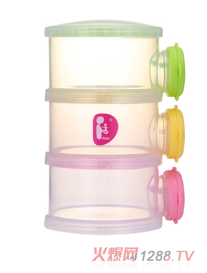 三層塑料奶粉盒,每層裝的奶粉量為嬰兒喝奶的一次用量,攜帶方便。每個盒子均可獨立開啟適用,方便外出時攜帶。可同時盛裝奶粉、米粉、麥粉或其它輔食,滿足寶寶多種的需求。