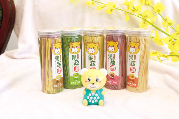 艾比小熊面條系列按造型分,有果蔬面、螺旋面、卡通面和海螺面;按口味分,有南瓜、混合、胡蘿卜、菠菜、甜菜等口味,以天然小麥粉為原料,小麥粉有著豐富的淀粉、蛋白質(zhì)、粗纖維、脂肪油、蛋白質(zhì)酶及微量元素等