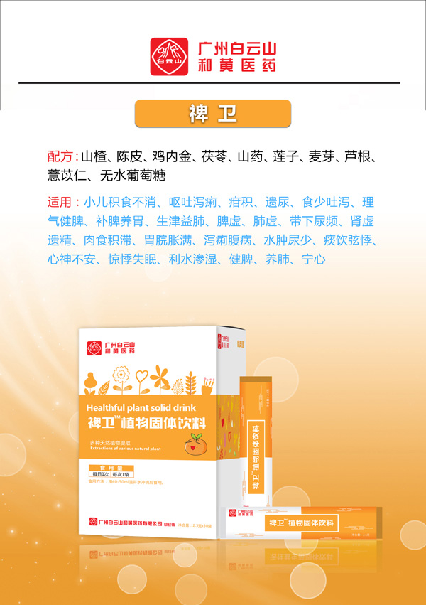 配方:山楂、陳皮、雞內金、茯苓、山藥、蓮子、麥芽、蘆根、薏苡仁、無水葡萄糖