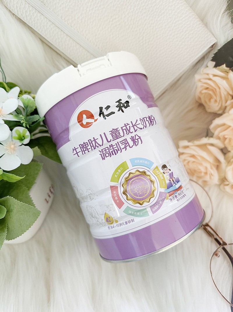 仁和牛脾肽兒童奶粉,生牛乳配方,專為兒童精心研制,科學護脾胃!富含成長關鍵期所需的多種營養元素,如牛脾肽、初乳堿性蛋白、乳鐵蛋白、DHA、ARA、益生菌等等它,配方好,營養全,添加量更是足足的!粉質很細膩,好沖調好吸收,口感非常好,孩子們都超愛喝!
