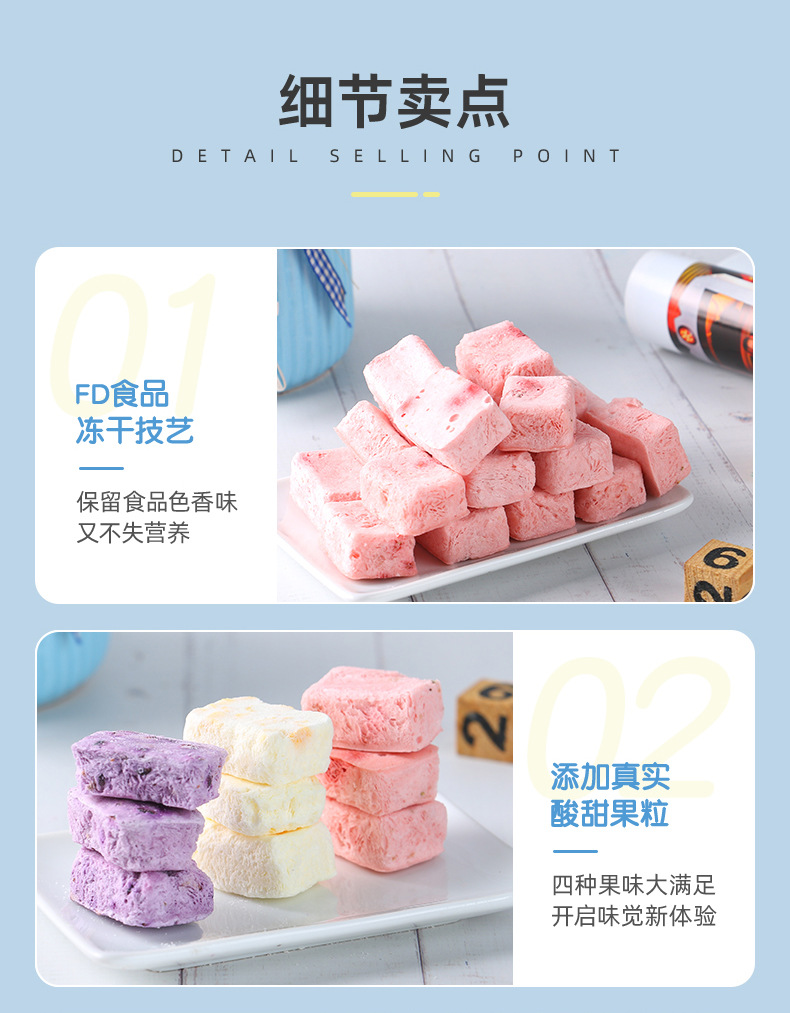 • OEM貼牌凍干果粒酸奶塊3克即食型草莓藍莓味益生菌塊口味定制源頭
