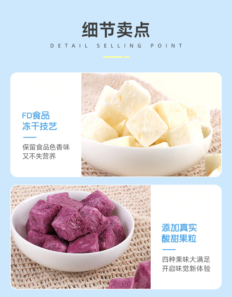 • OEM貼牌凍干果粒酸奶塊3克即食型草莓藍莓味益生菌塊口味定制源頭
