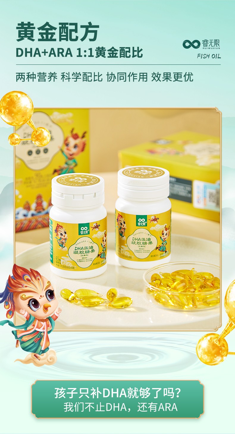 您所在位置:首頁>廣州睿無限生物科技有限公司>睿無限龍鳳版DHA藻油凝膠糖果90粒