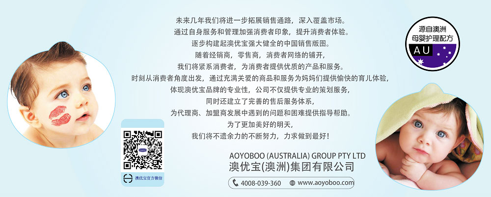 AOYOBOO (澳優(yōu)寶) 是來自澳洲的著名母嬰用品品牌,由澳洲自然科學(xué)研究院與皮膚科、產(chǎn)科、小兒皮膚科專家共同研究開發(fā)、專門針對孕產(chǎn)婦、新生兒及嬰幼兒時期的敏感嬌嫩肌膚而設(shè)計的低刺激高功能護(hù)膚用品。產(chǎn)品涵蓋了母乳喂養(yǎng)、奶瓶奶嘴、寶寶肌膚護(hù)理、衣物清洗等撫育寶寶的方方面面。