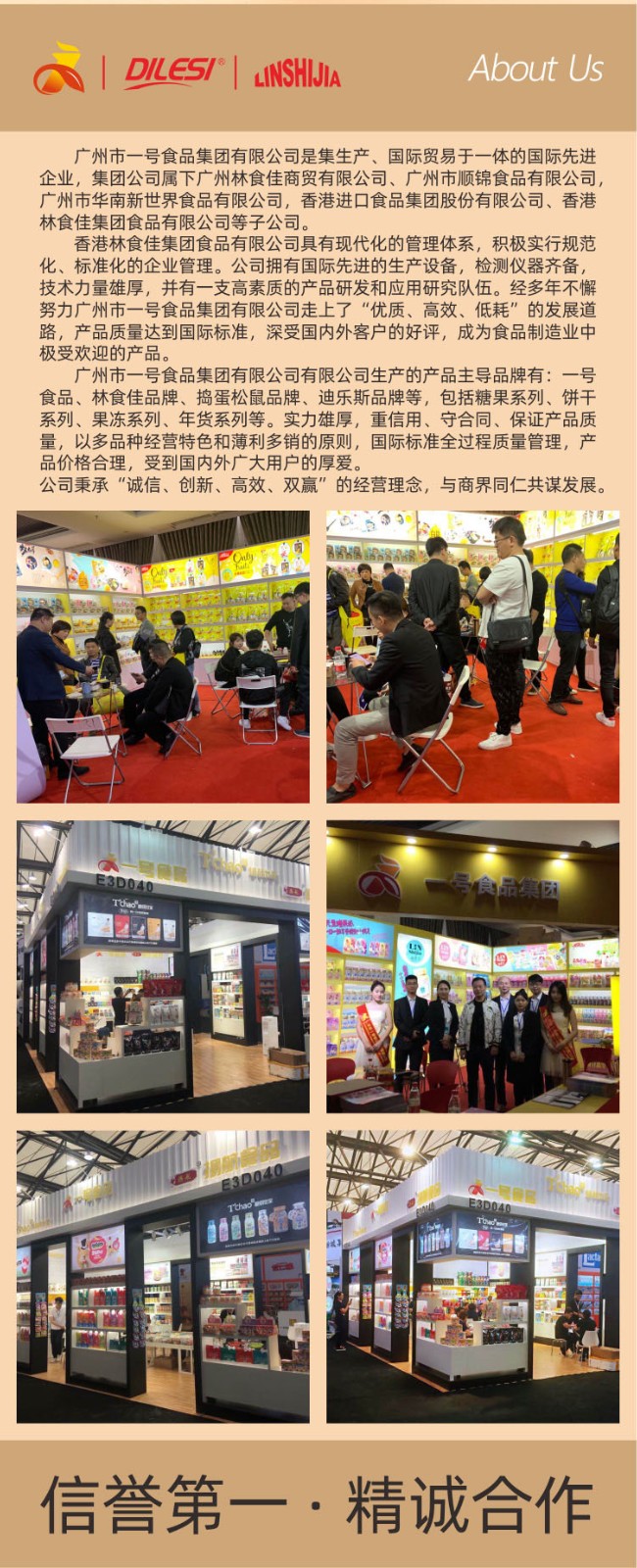迪樂斯,廣州市一號食品集團有限公司旗下品牌,它是一家集生產、國際貿易于一體的國際先進企業,集團公司屬下廣州林食佳商貿有限公司、廣州市順錦食品有限公司,廣州市華南新世界食品有限公司,香港進口食品集團股份有限公司、香港林食佳集團食品有限公司等子公司。