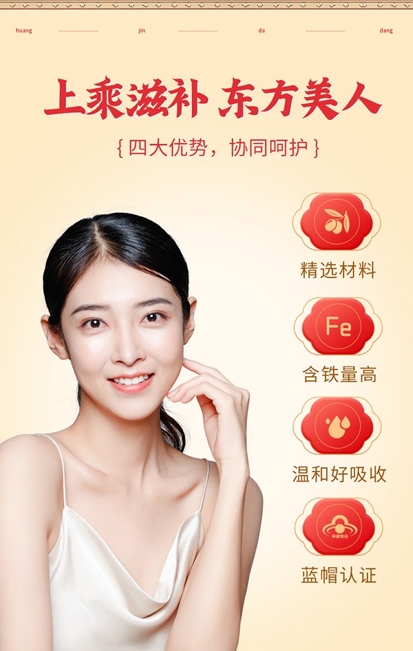 黃金搭檔枸杞烏雞阿膠口服液,藍帽保健食品,為缺鐵性貧血者精心研制!專注補鐵補血,名副其實的“血黃金”!精選優質食材配以藥食兩用原料,如烏雞、枸杞子、大棗、阿膠以及葡萄糖酸亞鐵等等,同時添加多種微量元素,營養成分含量更高,更均衡!每100ml含鐵31.5mg,含粗多糖61mg,上乘滋補,溫和好吸收,喚醒好氣色!