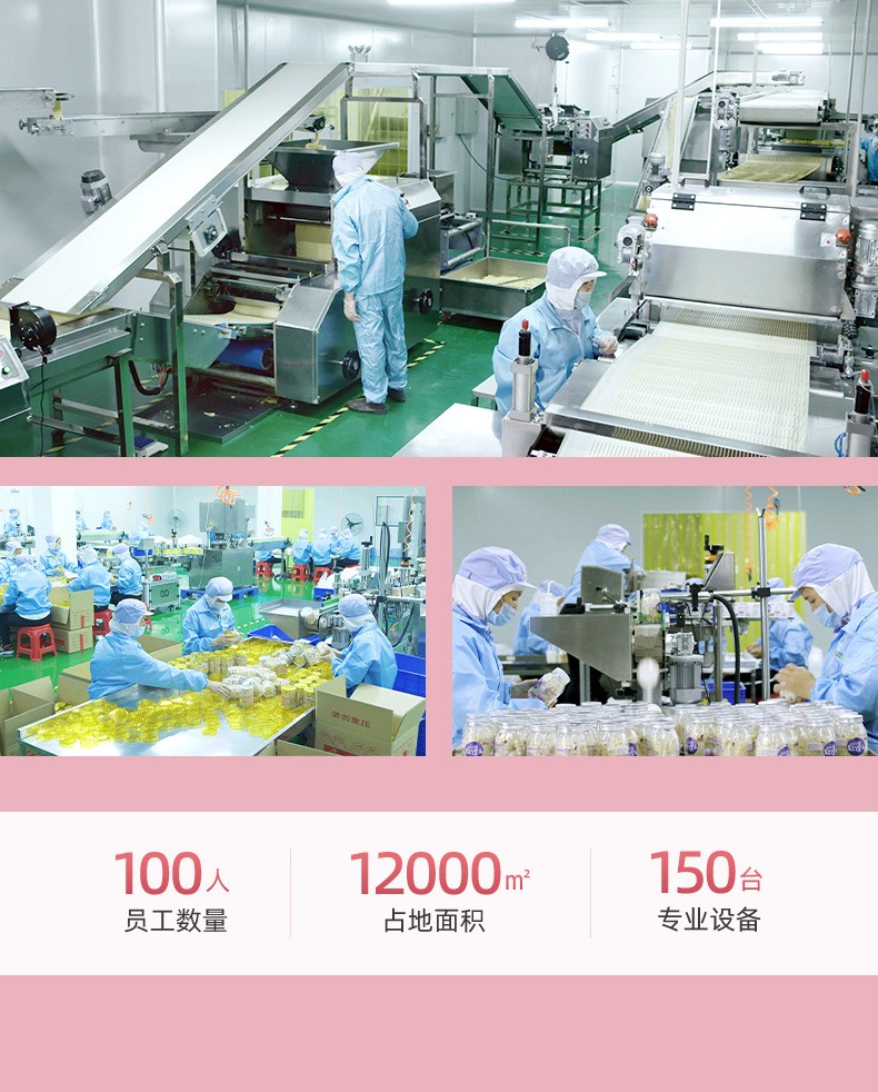 漳州童世界食品有限公司主營一站式代加工OEM業務,致力于健康兒童食品、功能性代餐食品、凍干燕窩的研發與生產,公司占地面積12000平方米,始終秉承已科技為先導、以先進的現代化管理依托、已“顧客滿意第一”為宗旨的經營方針、致力發展成為一家研發和制造健康、美味、營養的食品企業。 公司的誠信、實力和產品質量獲得業界的認可。歡迎各界朋友蒞臨參觀、指導和業務洽談。