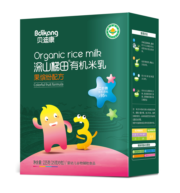 貝迪康深山梯田有機米乳 果繽紛配方 盒裝產品展示